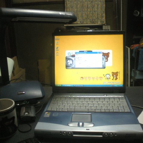 壊れたというか、ディスプレイが表示されなくなったFM-Vことネットパシさんですが、ふと、つけてみたら……画面が表示されたので、これはチャンスだ! といわんばかりに、アプリケーションCD-ROMを4枚もあるのにズバリ正解! ゴーオンブルー。