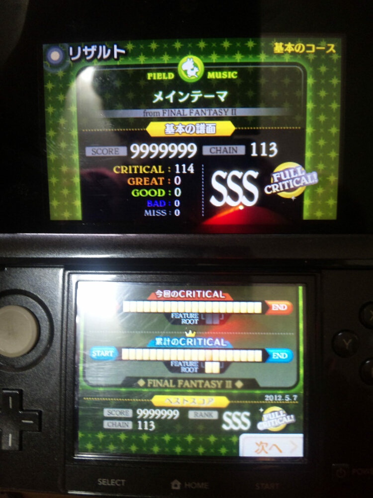 SSSなら塗り替えできるんじゃないかと奮闘したが、FF7のフィールド、イベントを苦労してフルクリティカルにしたものの、どうしても片翼の天使は無理で、フルチェインクリアした。平均的にSSSになる予定だったが、記録が塗り替えられることなく、オールSS。