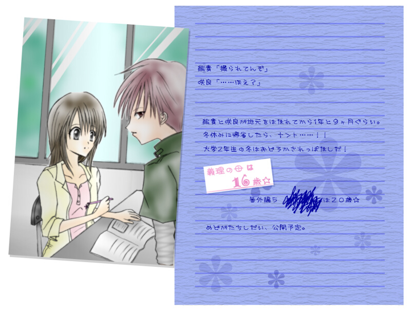 番外2、公開してます、紘貴が料理始めたきっかけみたいなの。現段階でいちばん番外らしい作品じゃないか。長さも。クドくないし。しつこくないし。